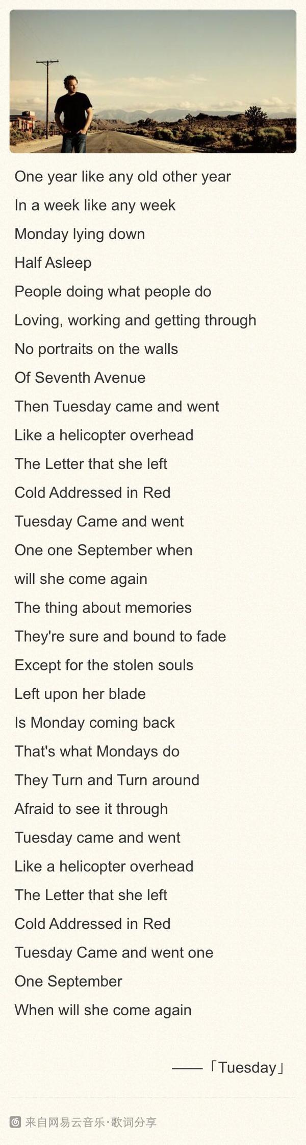 失恋、工作低潮、丢了钱、发现比别人混得差的时候,都会默念这句歌词,每每都眼泛泪光。